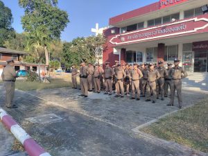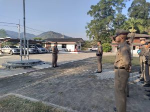 พ.ต.อ.สุเอก ฉินธนทรัพย์ ผกก.สภ.บ้านหนองพลับ พ.ต.ท.ตะวัน ตระการฤกษ์ รอง ผกก.ป.สภ.บ้านหนองพลับ พ.ต.ท.สุริยา อินทลี สวป.สภ.บ้านหนองพลับ ร.ต.อ.ทรงพจน์ วัชรกิจโสภณ ปฏิบัติหน้าที่ร้อยเวร 20 เรียกแถวสายตรวจผลัด ใหม่-เก่า เคารพธงชาติ กล่าวอุดมคติตำรวจ ราชสวัสดิ์ 10 ประการ ชี้แจงข้อราชการ กำชับการปฏิบัติตามโยบายการต่อต้านการรับสินบน (Anti- Bribery Policy) ไปปฏิบัติ และประกาศไม่รับของขวัญและของกำนัลทุกชนิด (No Gift Policy) จากการปฏิบัติหน้าที่ โดยให้ปฏิบัติโดยเคร่งครัด