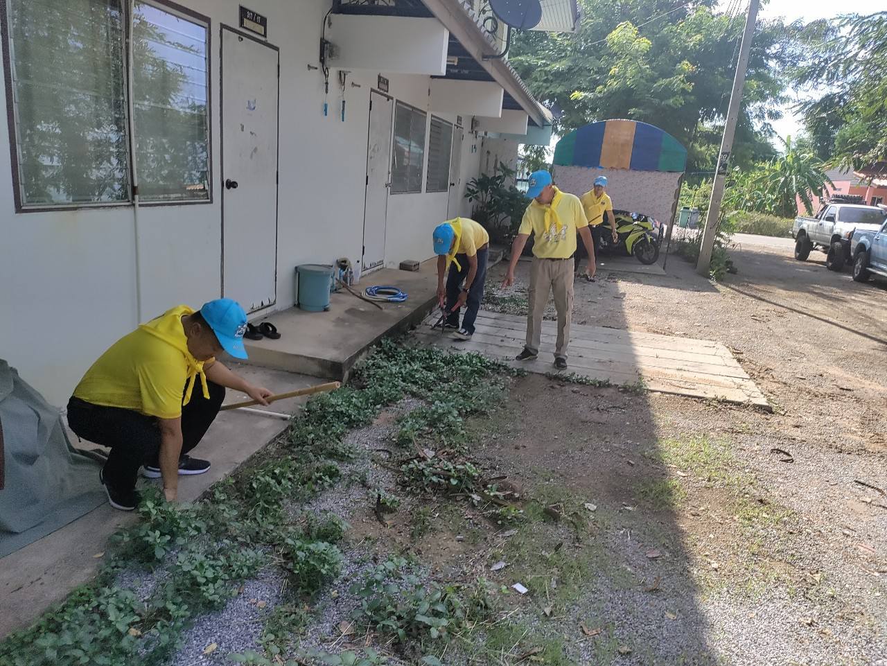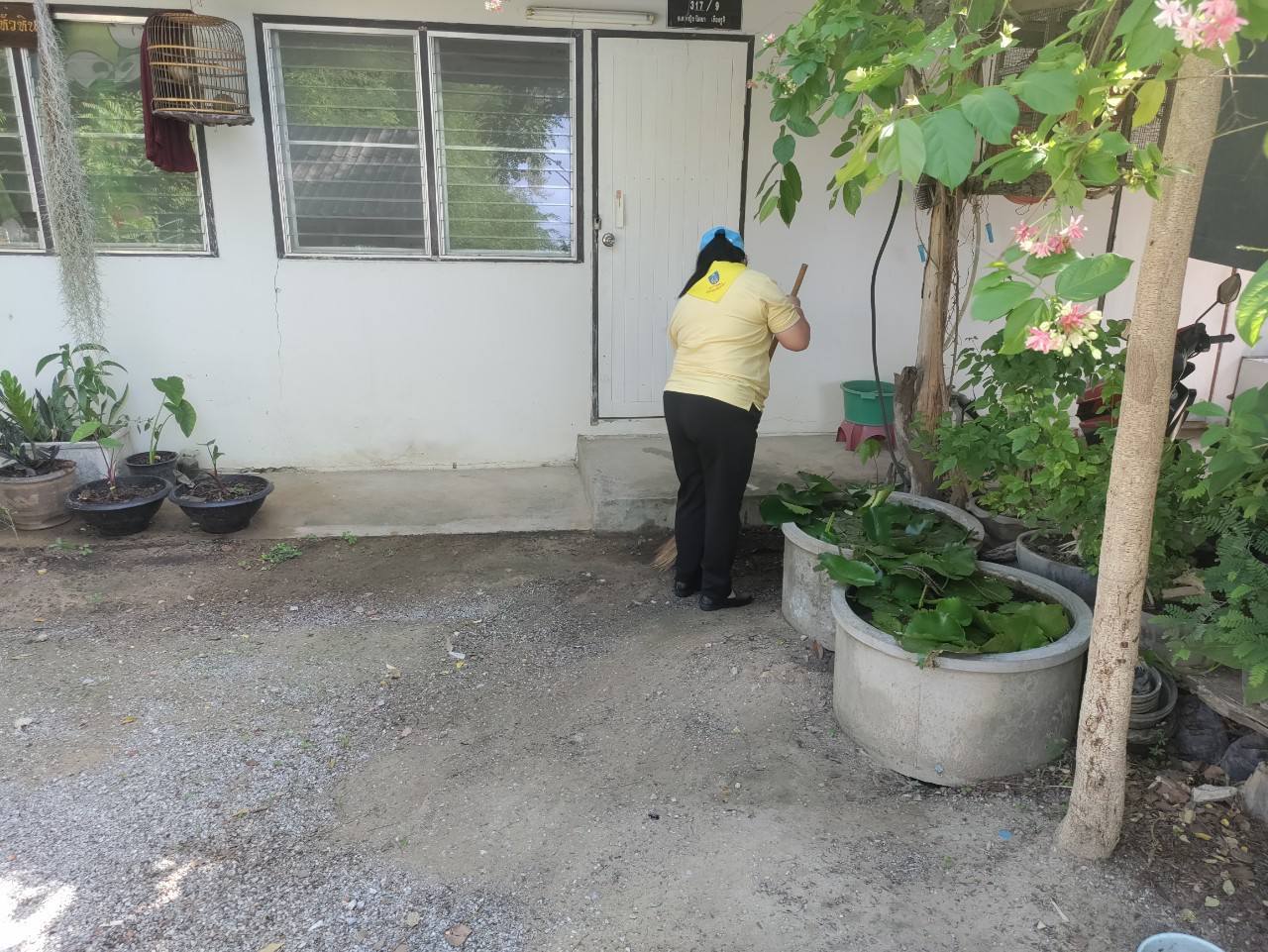 พ.ต.ท.ปริวัฒน์ เกิดทอง สว.สส.สภ.บ้านหนองพลับ ร่วมกิจกรรมจิตอาสาพัฒนาทำความสะอาดบริเวณอาคารบ้านพักข้าราชการตำรวจ สภ.บ้านหนองพลับ