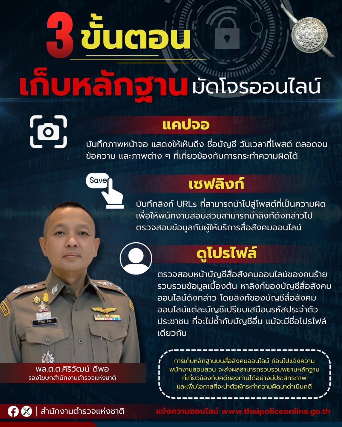 ตร. แนะ 3 ขั้นตอนเก็บหลักฐานมัดโจรออนไลน์